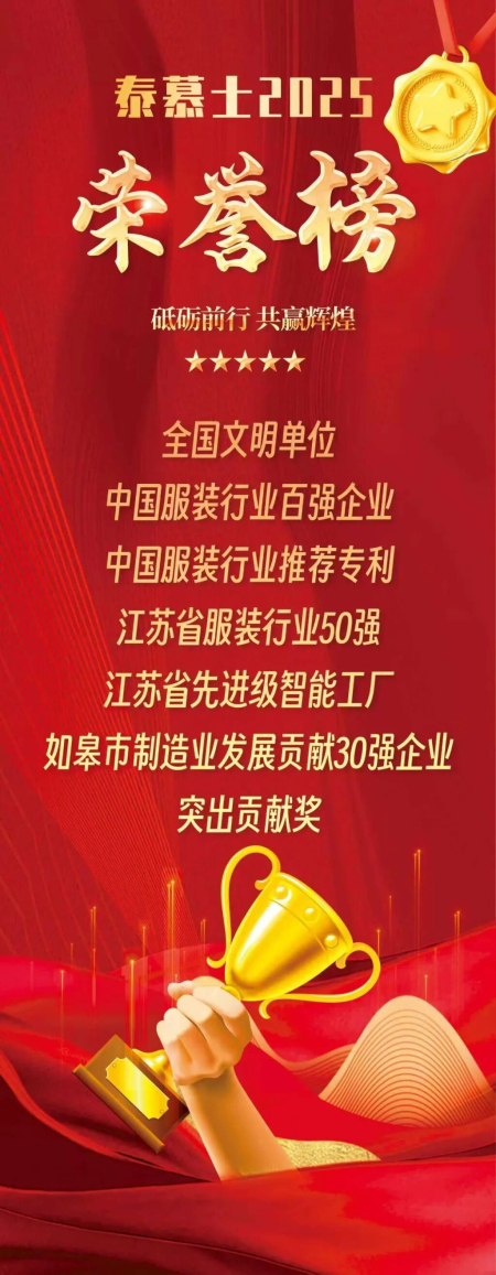 作为扎根江苏如皋市30余年的纺织服装龙头企业,泰慕士始终以科技创新为核心驱动力,在传统产业中走出了一条高端化、智能化、绿色化的转型之路。